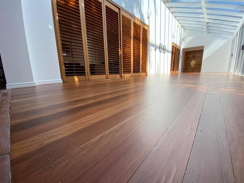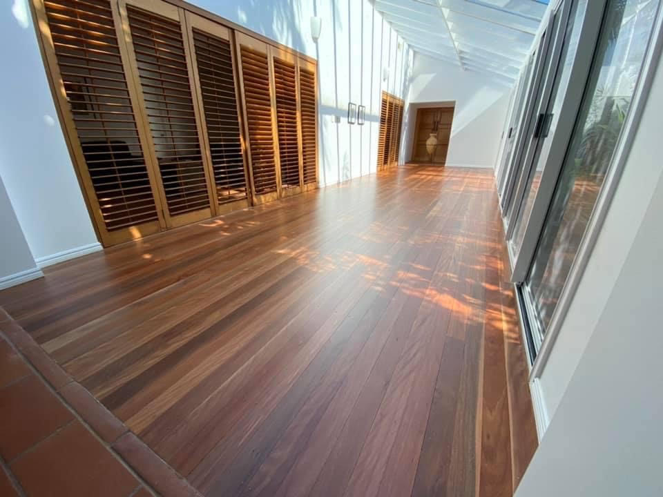The owners live on the canals and the floor has not been re-sanded for over the past 20 years the coating had delaminated, gone extremely yellow and had many scratches on the floor. The ceiling in this room is complete glass so it was especially important to choose a finish that reflected the beautiful sunlight shining through without damaging the floor.