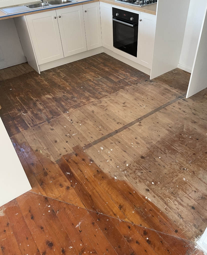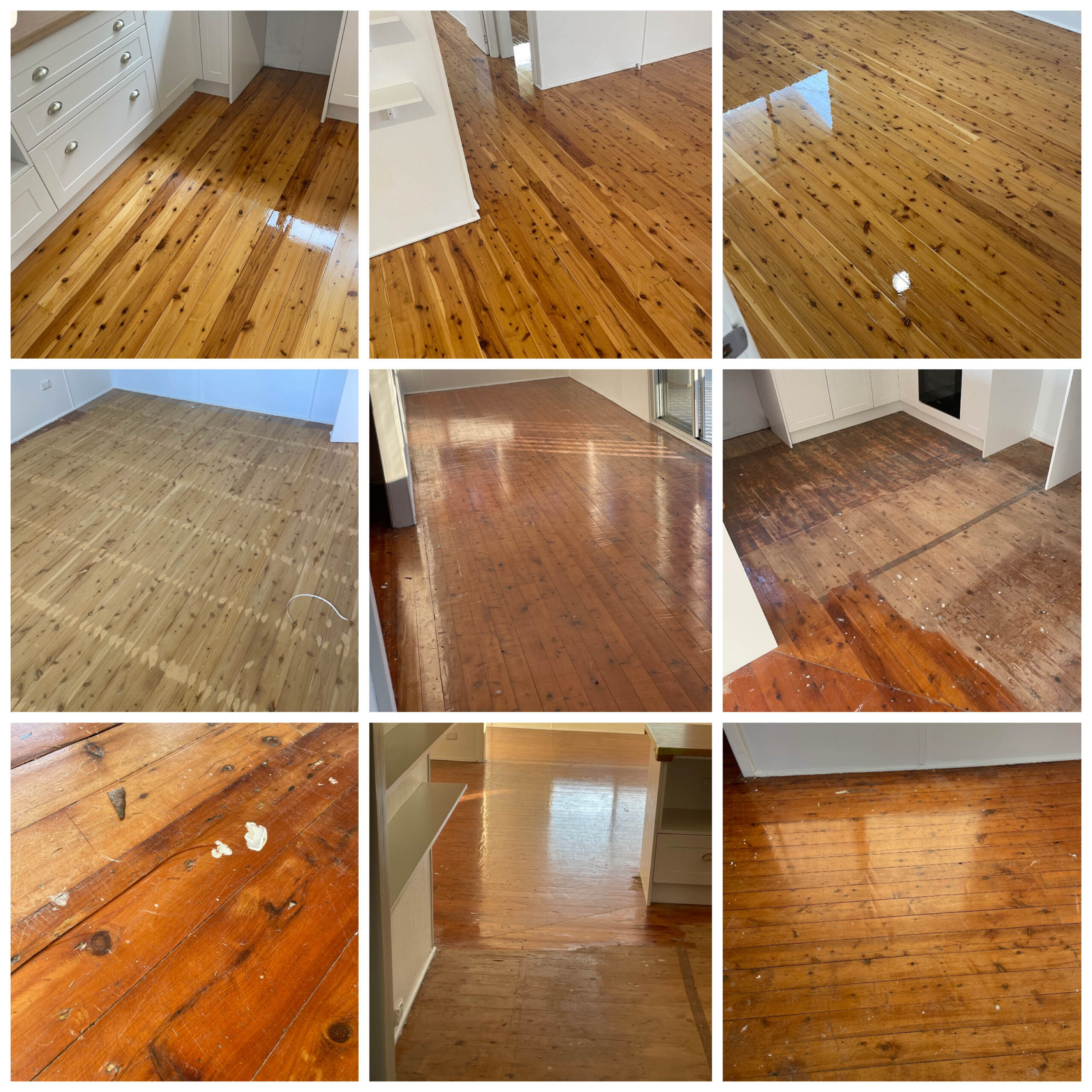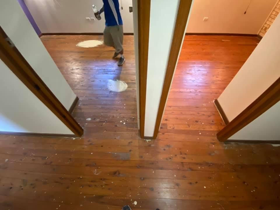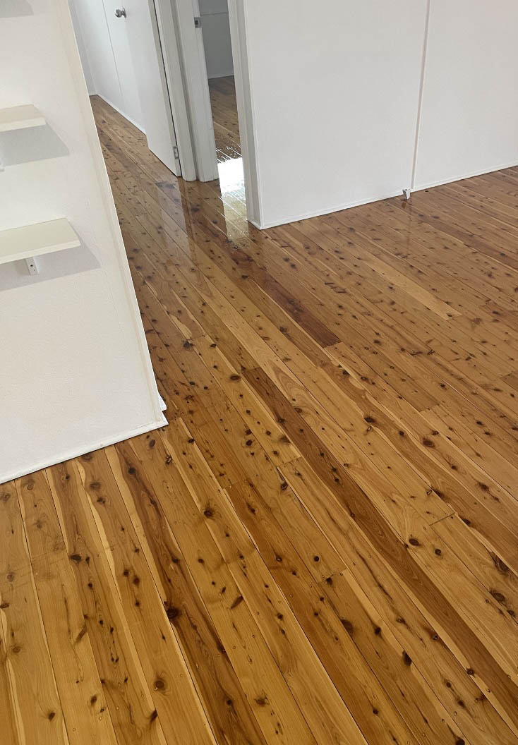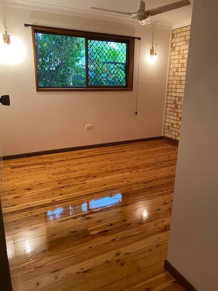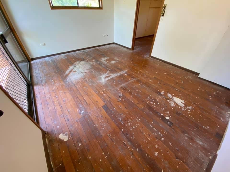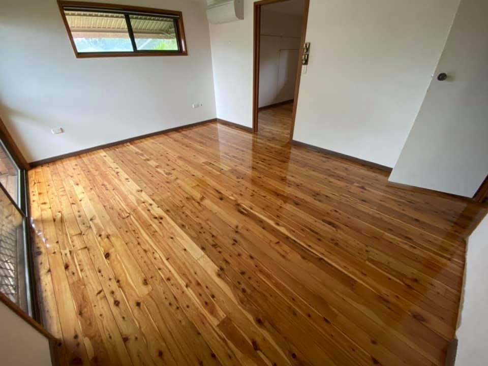 The owners, pulled up the old carpet, staples and smooth edge, repainted the rooms, and asked us to come in and re-sand and finish the existing timber floorboards. Cypress Pine is a yellow colour timber and is not very popular anymore as it was back in the 70’s and 80’s.