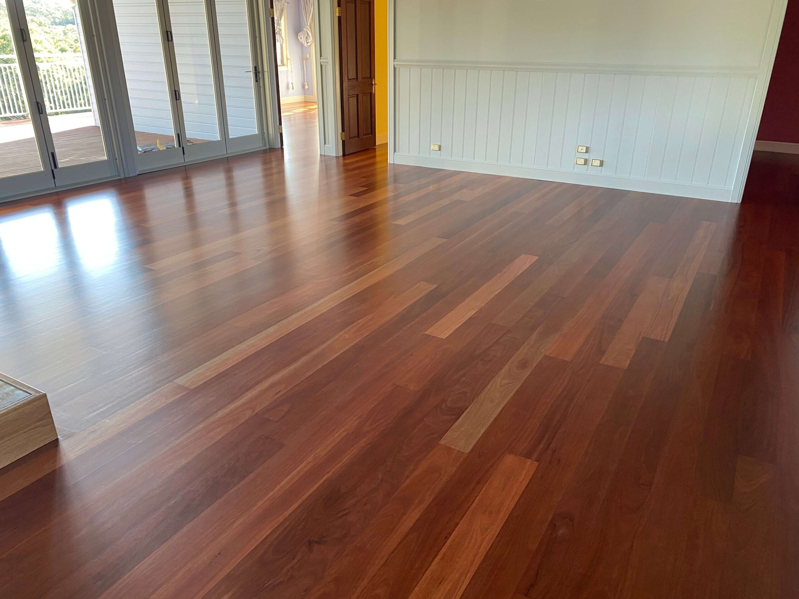 The owner recently purchased the property and the floors were in desperate need of a full sand and finish before they moved in. The newly re-sanded and coating brought out the natural timber colours and looks outstanding, finished with a Satin finish.
